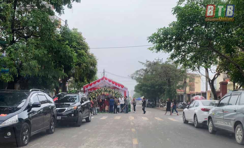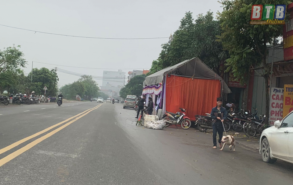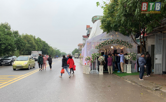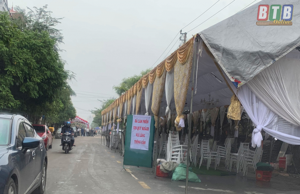 Mặc dù đã được tuyên truyền nhưng trên địa bàn thành phố Thái Bình và huyện Đông Hưng nhiều hộ dân vẫn dựng rạp cưới dưới lòng đường gây cản trở và mất an toàn giao thông.