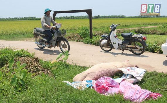 Thời gian qua, bệnh dịch tả lợn châu Phi xuất hiện trên địa bàn tỉnh đã gây thiệt hại nặng nề cho người chăn nuôi. Trong khi cả hệ thống chính trị của tỉnh vào cuộc cùng với người dân xử lý lợn ốm chết, ngăn chặn bệnh dịch lây lan thì có người dân có lợn ốm chết thay vì đưa lợn đi tiêu hủy theo đúng quy trình lại đem xác lợn chết ra để ngay cạnh đường đi ngoài cánh đồng thôn Thành Long, xã Đông Hải (Tiền Hải).