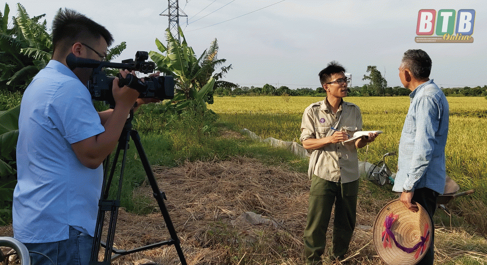 Phóng viên Báo Thái Bình tác nghiệp giữa tiết trời nắng nóng.