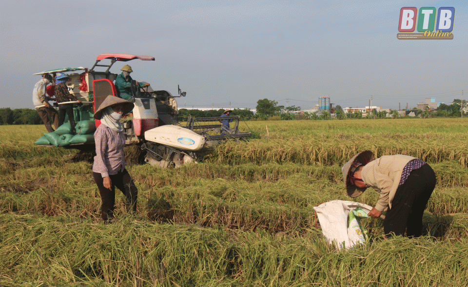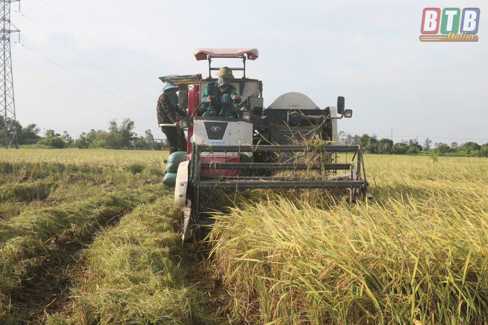 Thời điểm này, tiếng máy gặt lúa vang khắp các cánh đồng.