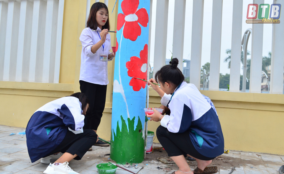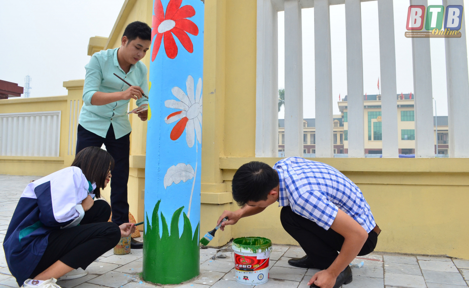 Không còn quảng cáo, rao vặt dán chi chít trên những cột điện ở thị trấn Tiền Hải (Tiền Hải), thay vào đó là những bông hoa rực rỡ sắc màu do đoàn viên thanh niên thực hiện đã mang diện mạo mới cho các khu phố. Phóng viên Báo Thái Bình đã ghi lại một số hình ảnh đoàn viên thanh niên vẽ hoa trên các cột điện ở thị trấn Tiền Hải.