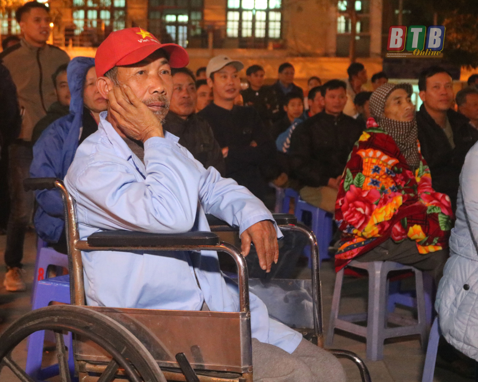 Gác lại nỗi đau bệnh tật và giá rét, người hâm mộ cùng dõi theo đội tuyển Việt Nam tại Bệnh viện Đa khoa tỉnh.
