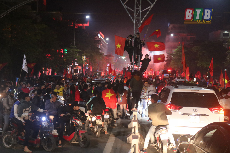 Sau 60 năm chờ đợi, đội tuyển bóng đá nam Việt Nam đã làm thỏa con khát huy chương vàng của người hâm mộ Việt Nam khi đánh bại Indonesia 3-0 trong trận chung kết SEA Games 30. Cùng hàng triệu người hâm mộ trên cả nước, những khán giả Thái Bình luôn dõi theo, cổ vũ cho đội tuyển và cùng hòa vào niềm vui chiến thắng. Phóng viên Báo Thái Bình đã ghi lại một số hình ảnh đêm chung kết rực lửa của đội tuyển Việt Nam.