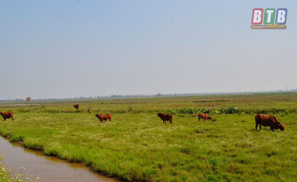 Ruộng canh tác của xã An Ấp (Quỳnh Phụ) trở thành nơi chăn thả gia súc.