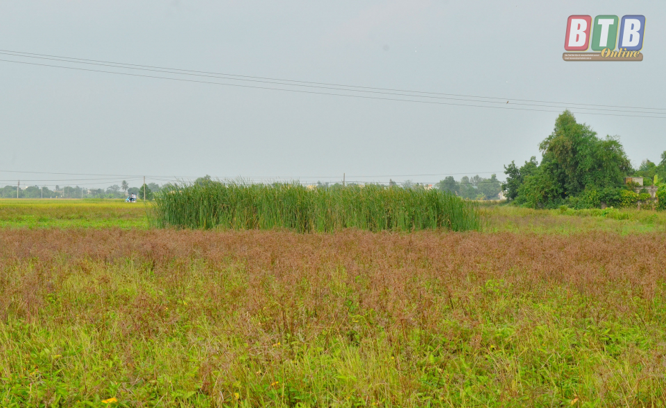 Cánh đồng xã Hòa Bình (Kiến Xương) bị bỏ hoang không cấy khiến cỏ mọc quá đầu người.