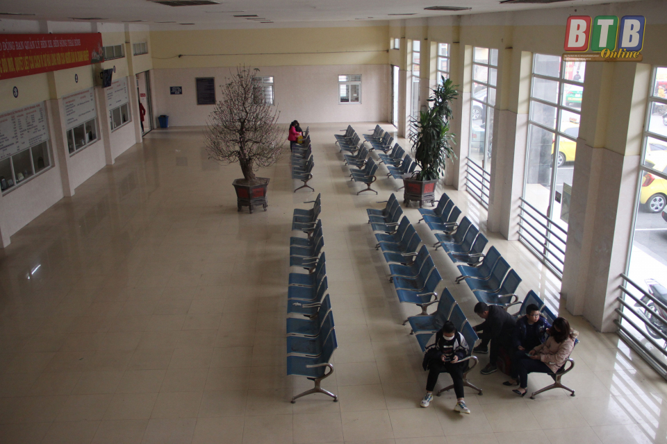 Khu vực bán vé tại bến xe khách Thái Bình rất vắng vẻ.