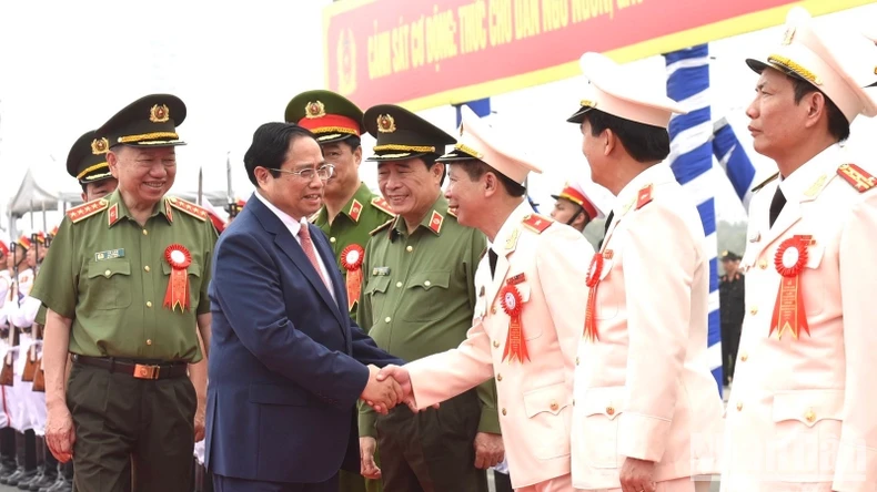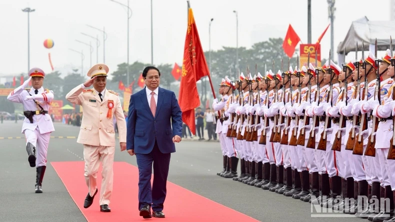 Thủ tướng Phạm Minh Chính duyệt Đội danh dự Công an nhân dân Việt Nam. (Ảnh: Trần Hải).