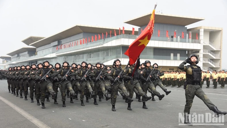 Lực lượng Cảnh sát cơ động diễu binh tại Lễ kỷ niệm. (Ảnh: Trần Hải).