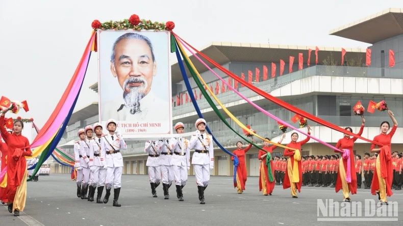 Đội diễu hành Công an nhân dân rước ảnh Bác Hồ. (Ảnh: Trần Hải).