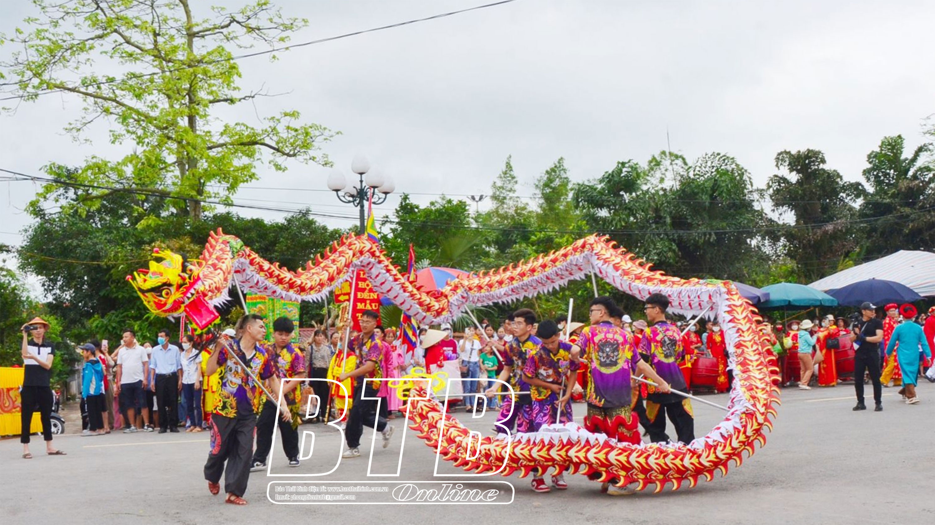 Biểu diễn múa rồng tại lễ hội Tiên La.