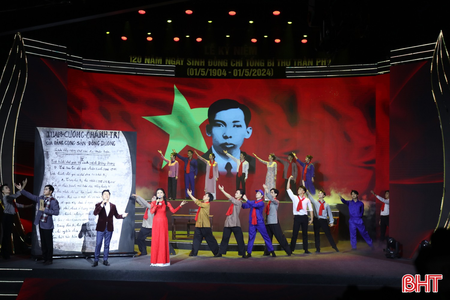 Tiếp đó, đại biểu tham dự được thưởng thức chương trình nghệ thuật đặc sắc có chủ đề “Hãy giữ vững chí khí chiến đấu” tái hiện những dấu mốc quan trọng trong suốt cuộc đời hy sinh, cống hiến của Tổng Bí thư Trần Phú.
