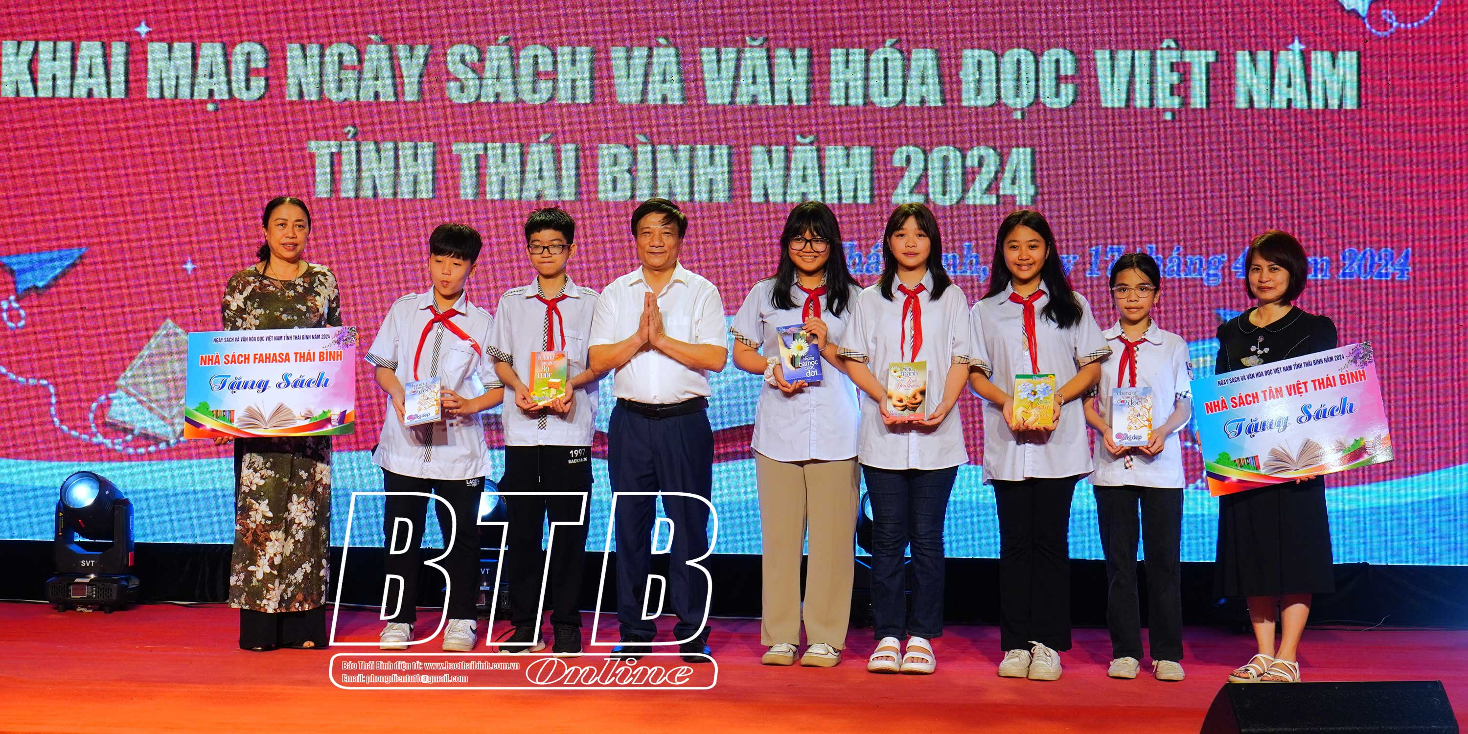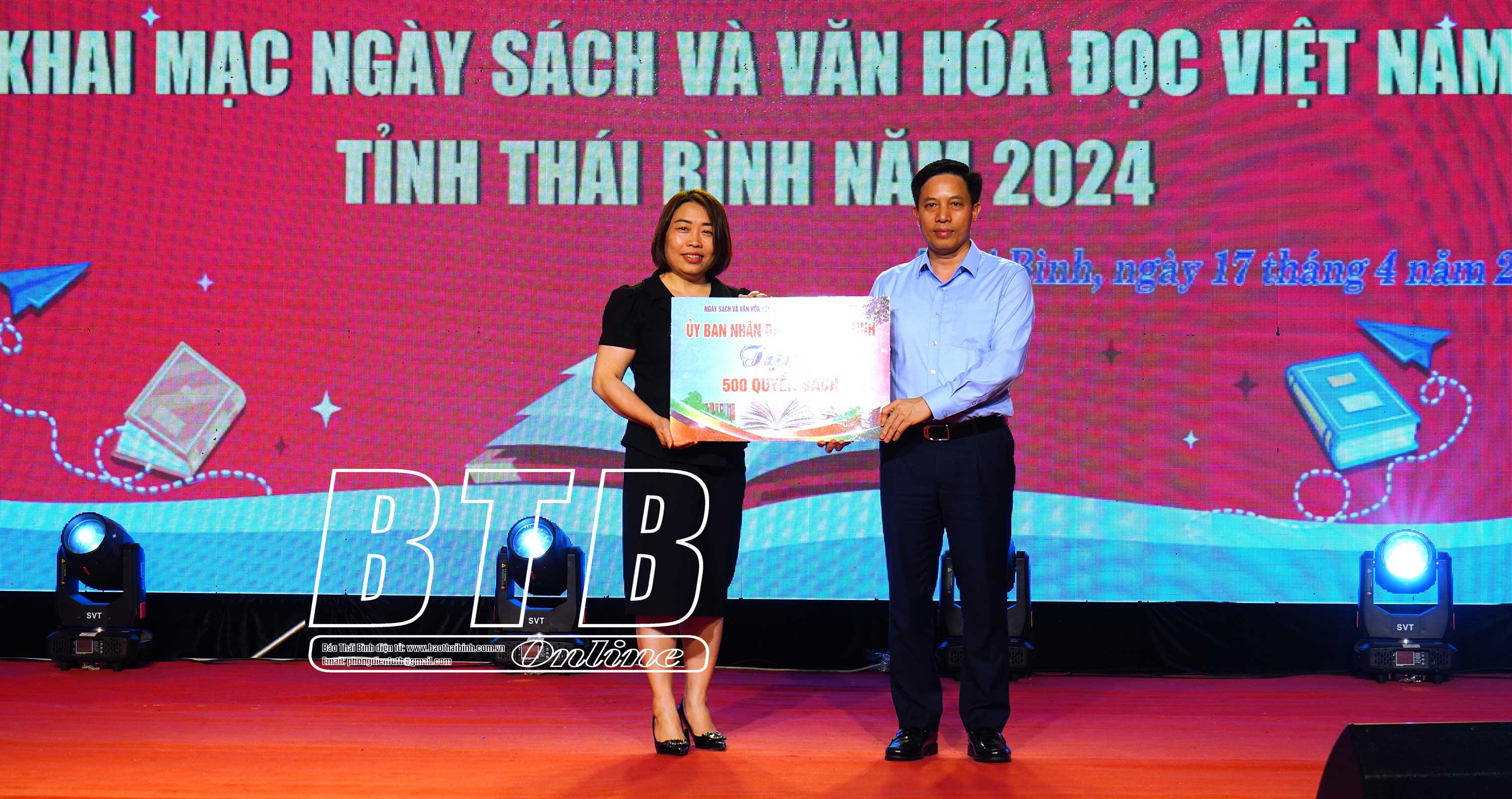 Nhân dịp này, đồng chí Lại Văn Hoàn, Tỉnh ủy viên, Phó Chủ tịch UBND tỉnh đã trao tặng 500 cuốn sách cho Thư viện tỉnh. Lãnh đạo Sở Giáo dục và Đào tạo đã trao tặng sách tham khảo, sách bổ trợ kiến thức các cấp học cho học sinh Trường THCS Kỳ Bá (thành phố Thái Bình) và Trường Tiểu học thị trấn Vũ Thư (Vũ Thư). Lãnh đạo Sở Thông tin và Truyền thông đã trao tặng phần quà của nhà tài trợ cho Không gian đọc An Dục (Quỳnh Phụ). Đại diện Công ty Cổ phần Sách - thiết bị trường học trao tặng tủ sách trị giá 10 triệu đồng cho Thư viện tỉnh.