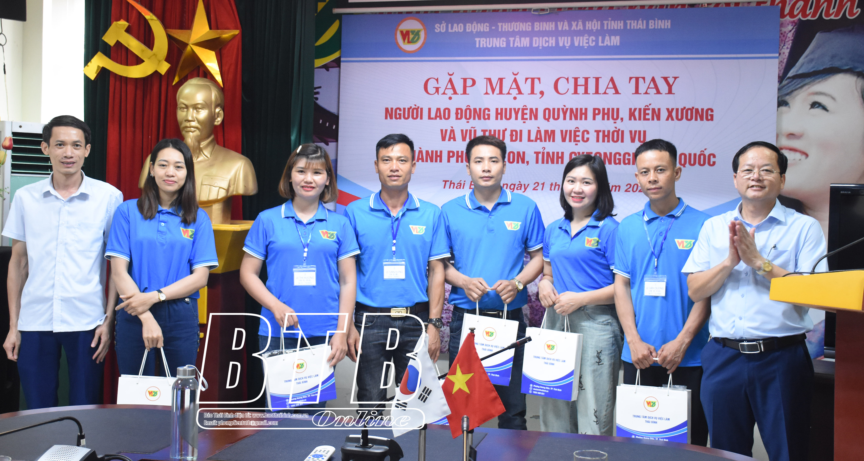 20 người lao động của các huyện Quỳnh Phụ, Kiến Xương và Vũ Thư đi làm việc thời vụ trong lĩnh vực nông nghiệp tại Hàn Quốc (đợt 2 năm 2024) được thực hiện theo bản ghi nhớ và thỏa thuận hợp tác giữa chính quyền thành phố Icheon, tỉnh Gyeonggi (Hàn Quốc) với UBND các huyện Quỳnh Phụ, Kiến Xương và Vũ Thư.