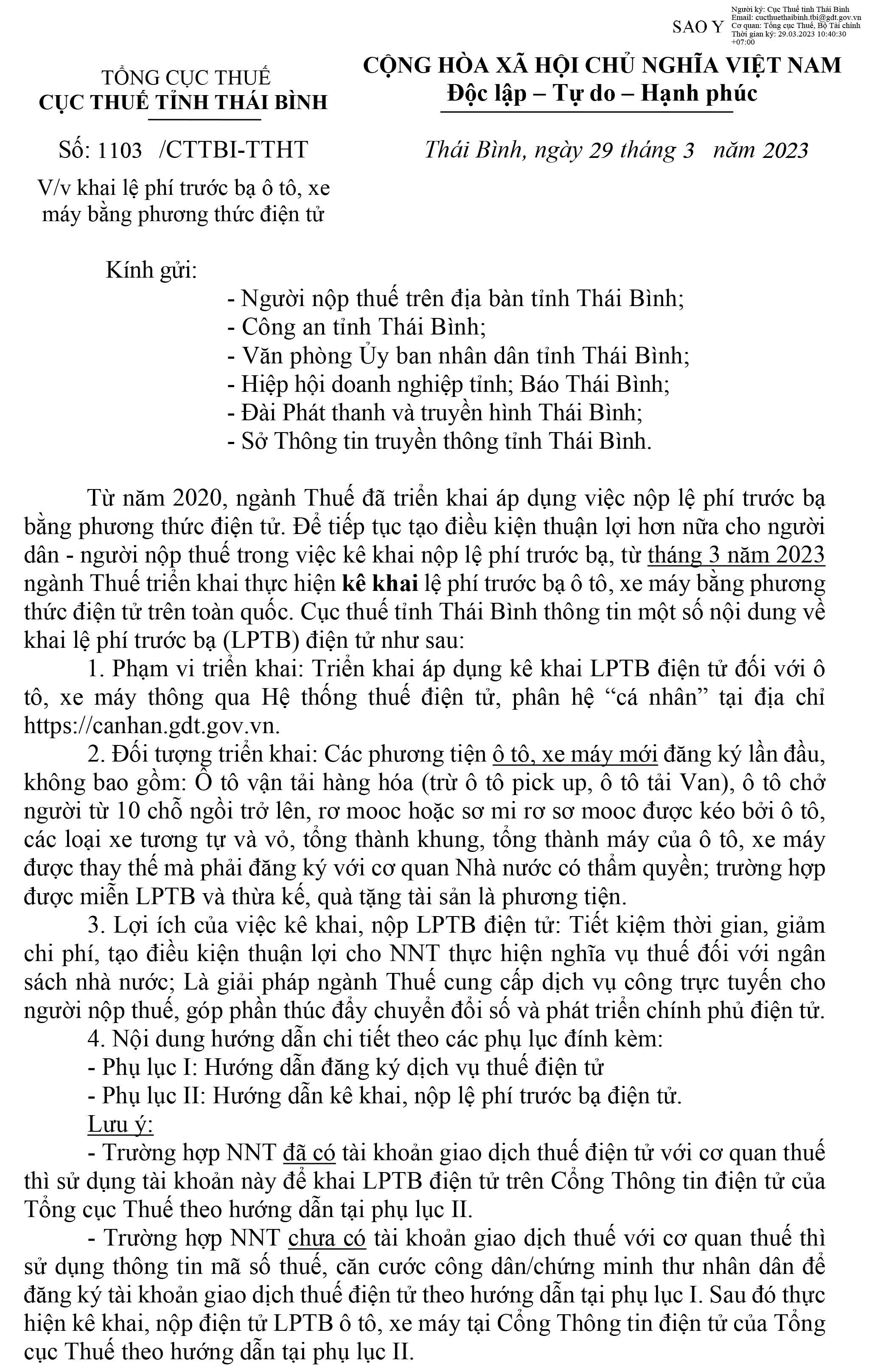 Khai lệ phí trước bạ ô tô, xe máy bằng phương pháp điện tử