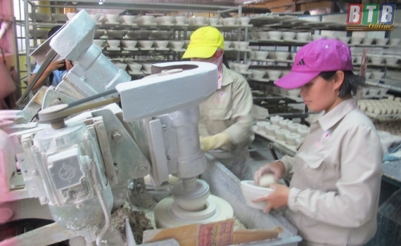 Hoạt động sản xuất tại Công ty Cổ phần gốm sứ Long Hầu (Tiền Hải).