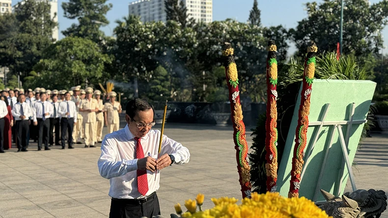 Đồng chí Nguyễn Văn Nên, Ủy viên Bộ Chính trị, Bí thư Thành ủy Thành phố Hồ Chí Minh dâng hương tưởng nhớ các Anh hùng Liệt sĩ.