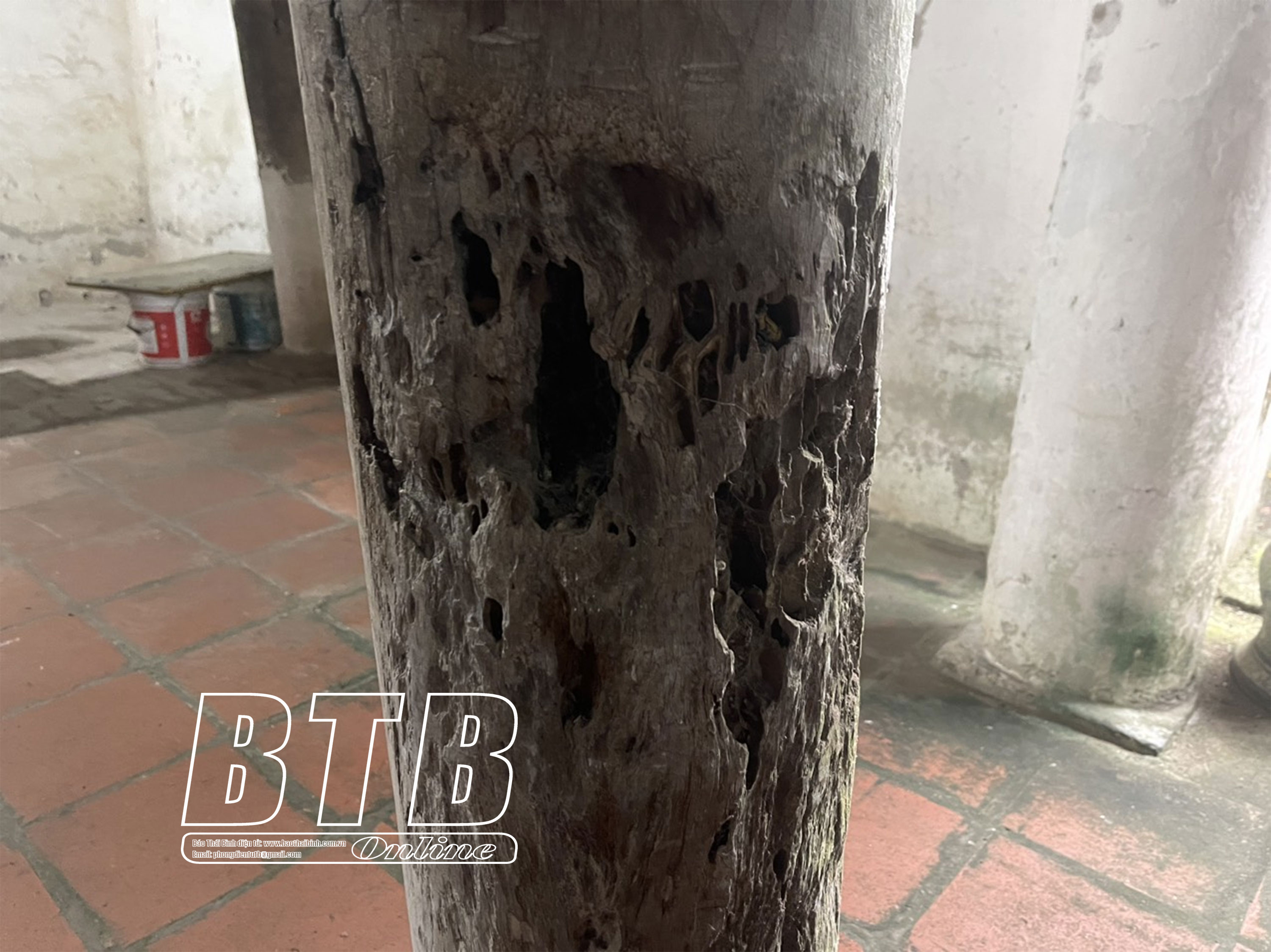 Các góc mái đình đã bị mối mọt và nứt tường có nguy cơ sụp đổ.