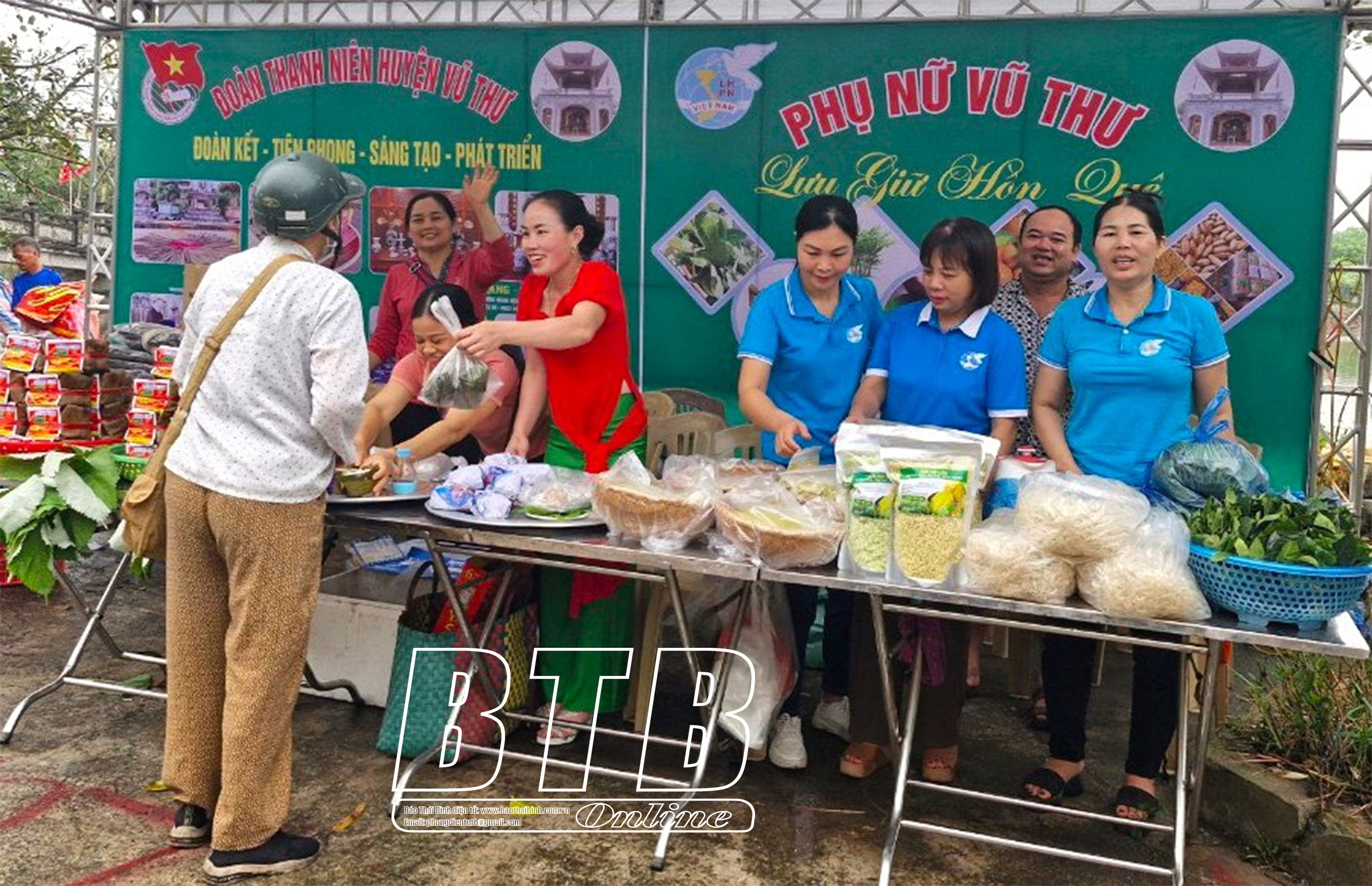 Các gian hàng trưng bày, bày bán sản phẩm đặc trưng và OCOP của huyện Vũ Thư tại lễ hội.