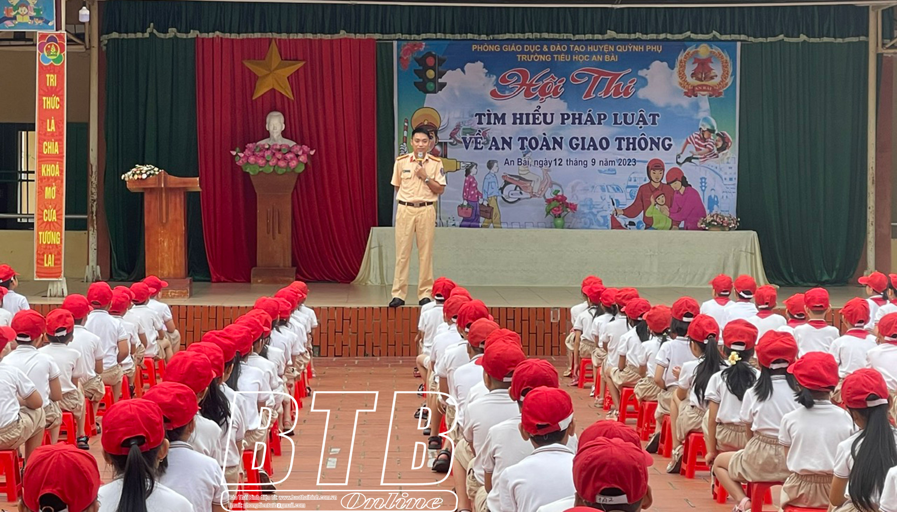 Công an huyện Quỳnh Phụ phối hợp các trường học tổ chức tuyên truyền Luật Giao thông đường bộ cho cán bộ, giáo viên và học sinh trên địa bàn huyện.