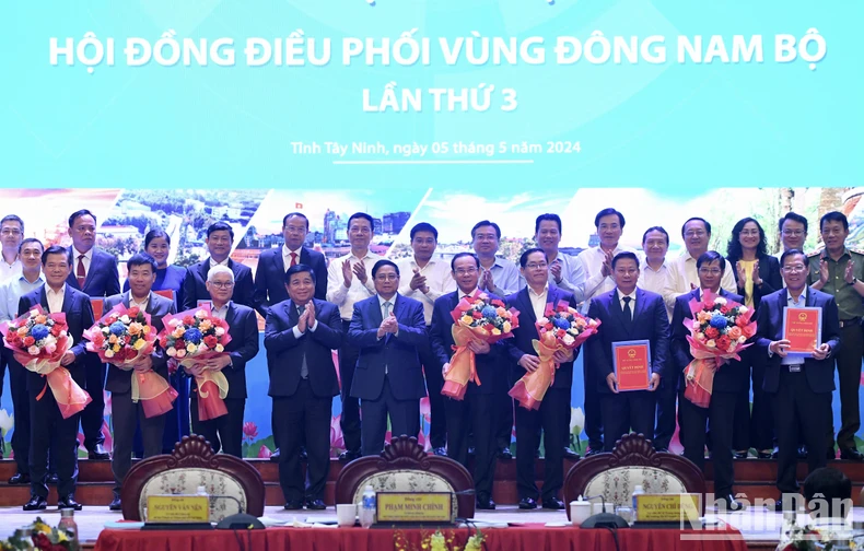 Nhân dịp này, Thủ tướng Phạm Minh Chính đã trao Quyết định của Thủ tướng phê duyệt Quy hoạch và Hồ sơ quy hoạch vùng cho lãnh đạo các địa phương vùng Đông Nam Bộ.