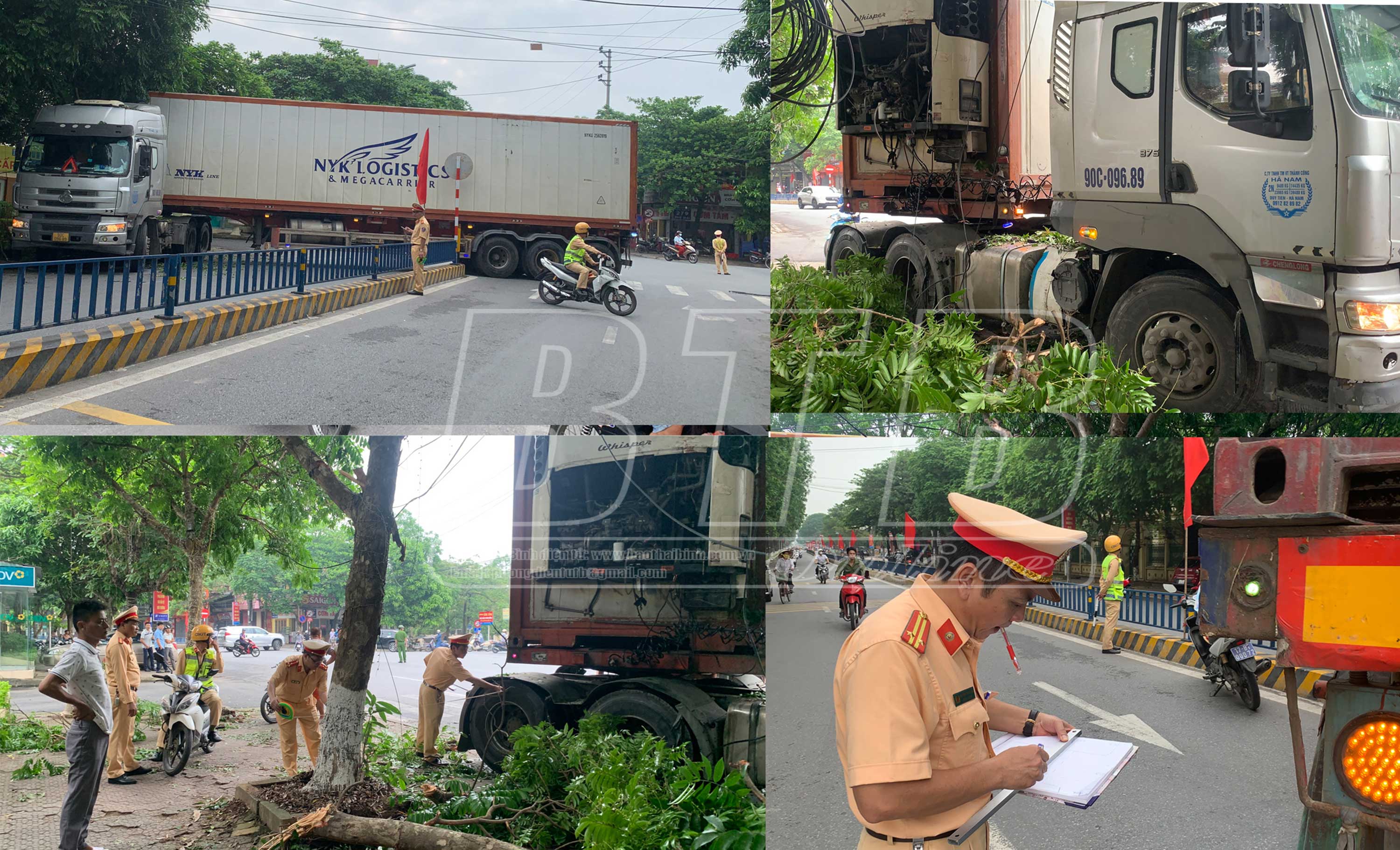 Ngay sau khi nhận được tin báo, lực lượng cảnh sát giao thông, Công an thành phố đã có mặt để điều tiết, phân luồng giao thông; tổ chức khám nghiệm hiện trường, lập biên bản xử lý vụ việc. Đồng thời, liên hệ với Công ty sở hữu chiếc xe trên và lái xe để có phương án giải tỏa phương tiện khỏi hiện trường.