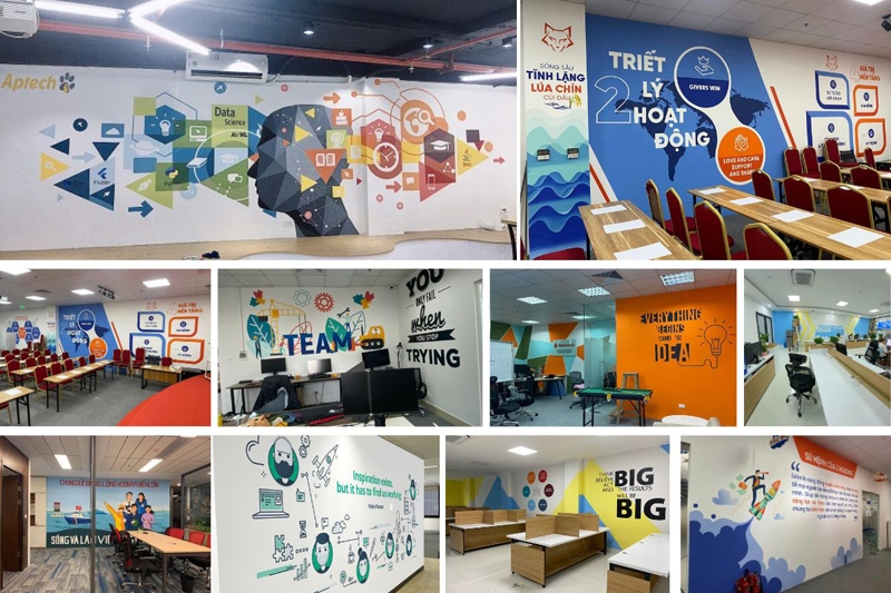 Xu hướng vẽ tranh tường văn phòng được nhiều doanh nghiệp lựa chọn, cùng tham khảo các mẫu trang trí vẽ tường văn phòng đẹp và báo giá vẽ tranh tường văn phòng.