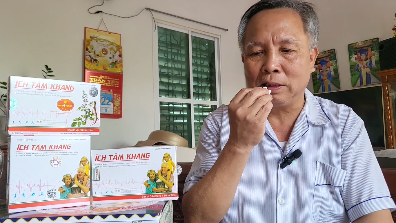 “Cũng may là nhờ dùng Ích Tâm Khang, cho đến bây giờ là tôi không còn phải lo lắng, lăn tăn về cái bệnh động mạch vành, không lo tái phát nhồi máu cơ tim nữa, không còn buồn bã về bệnh tật như trước kia nữa. Nên anh em cố gắng, nếu bị bệnh tim mạch, động mạch vành thì nên cố gắng dùng Ích Tâm Khang không là tiếc đấy.”