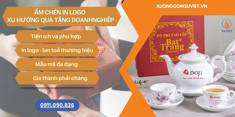 Xưởng gốm Sứ Việt - đơn vị cung cấp ấm chén in logo quà tặng uy tín.