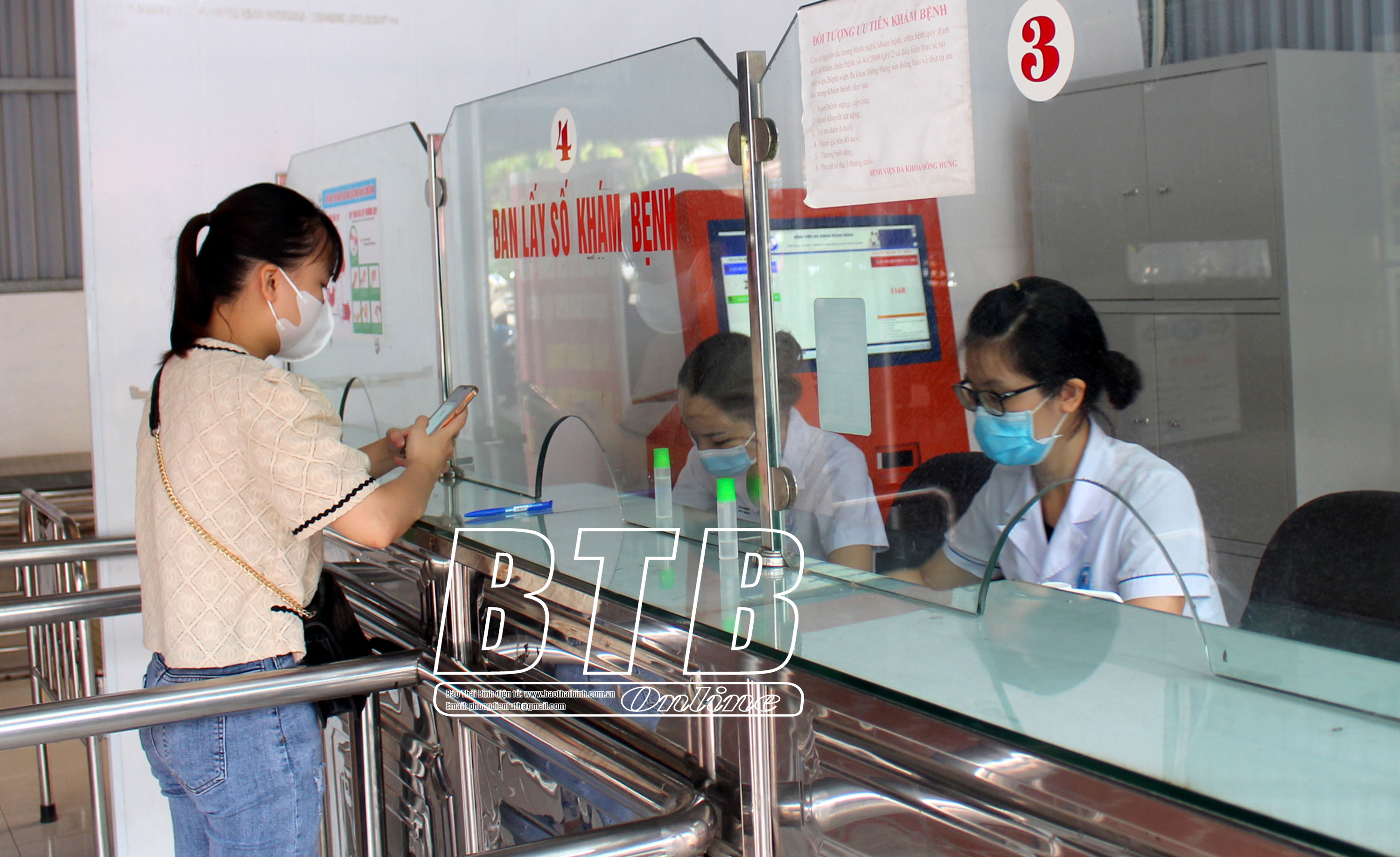 Người dân đến khám bệnh tại Bệnh viện Đa khoa huyện Đông Hưng.