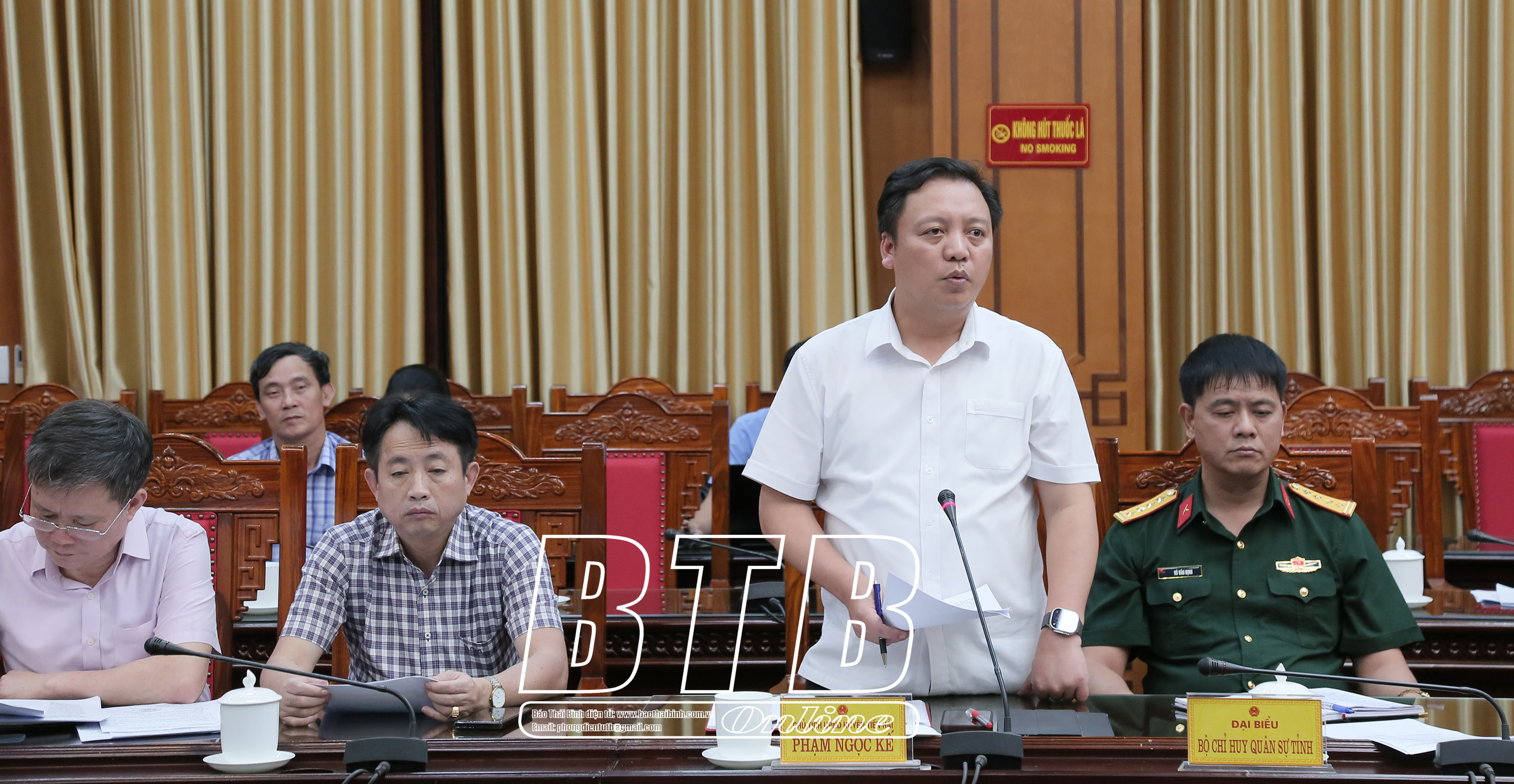 Lãnh đạo huyện Tiền Hải phát biểu tại cuộc họp.