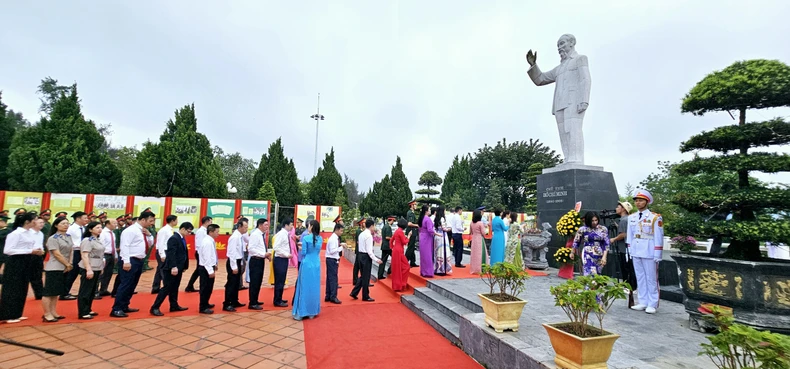 Các đại biểu dự lễ dâng hương tại khu lưu niệm Chủ tịch Hồ Chí Minh trên đảo Cô Tô.