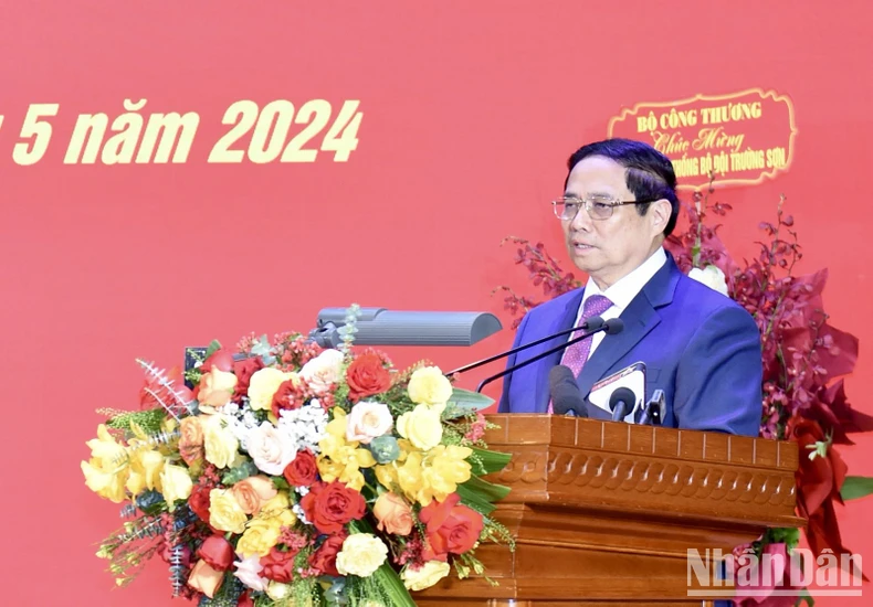 Phát biểu ý kiến, nhấn mạnh trong không khí hào hùng của những ngày tháng 5 lịch sử với nhiều sự kiện lớn, kỷ niệm 70 năm Chiến thắng Điện Biên phủ, 65 năm ngày mở đường Hồ Chí Minh-Ngày Truyền thống Bộ đội Trường Sơn, Thủ tướng Phạm Minh Chính bày tỏ sự vui mừng khi tới thăm Binh đoàn 12 (Tổng công ty Xây dựng Trường Sơn) và dự Hội Truyền thống Trường Sơn-Đường Hồ Chí Minh Việt Nam. Thủ tướng nhấn mạnh, việc mở đường Trường Sơn-đường Hồ Chí Minh là sự sáng tạo chiến lược của Đảng ta; là nghệ thuật tổ chức lực lượng, tổ chức thế trận, tổ chức hệ thống lãnh đạo, chỉ huy, điều hành, tổ chức mạng lưới đường và hệ thống binh trạm, kho tàng; mở đường, bảo đảm hành quân, giao thông, vận chuyển... Đồng thời, là biểu tượng của chủ nghĩa anh hùng cách mạng, của ý chí quyết chiến, quyết thắng, khí phách kiên cường và sức mạnh sáng tạo, độc đáo của nghệ thuật chiến tranh nhân dân Việt Nam.