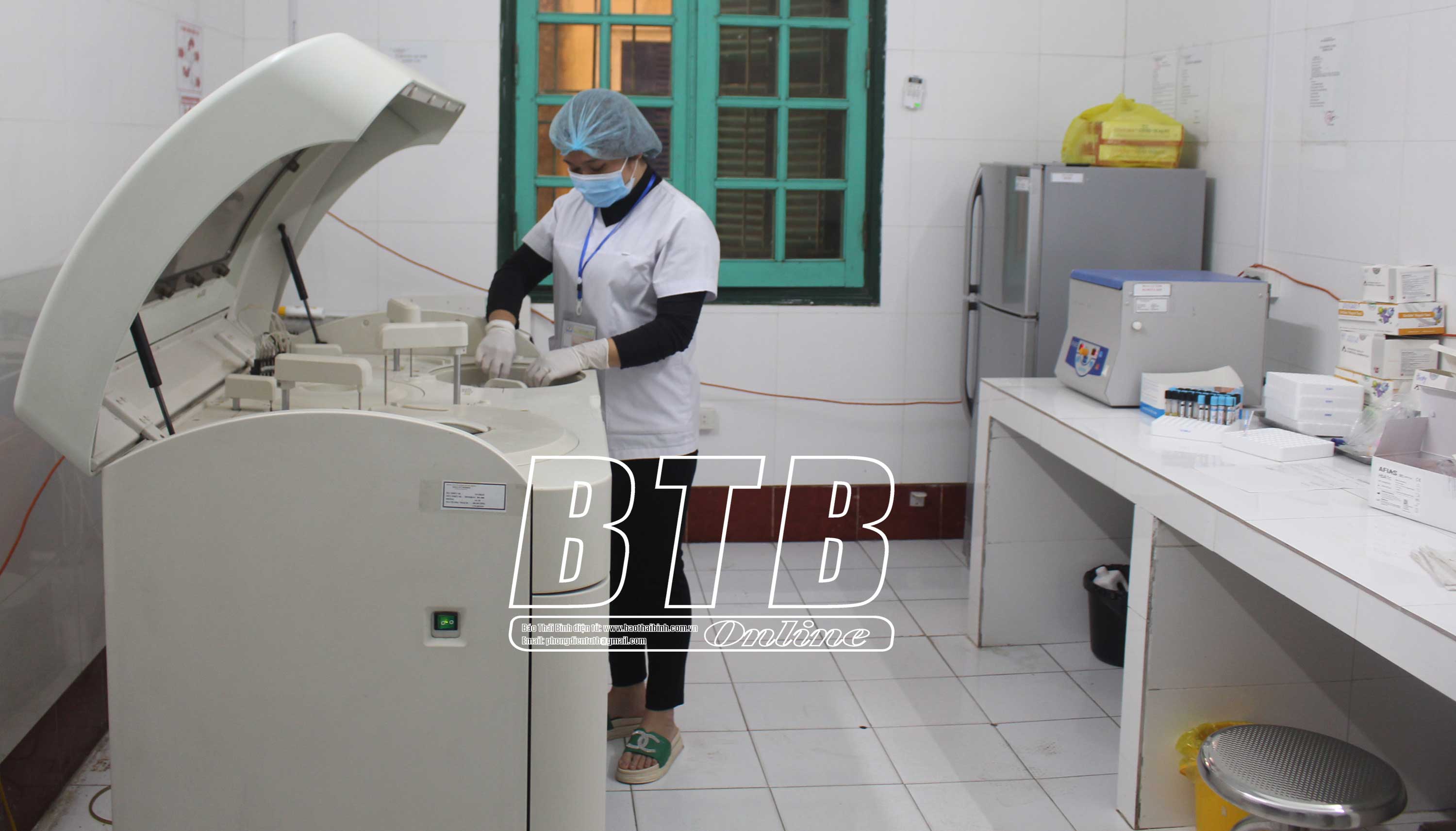 Cán bộ Bệnh viện Đa khoa Hưng Nhân làm xét nghiệm cho người bệnh.