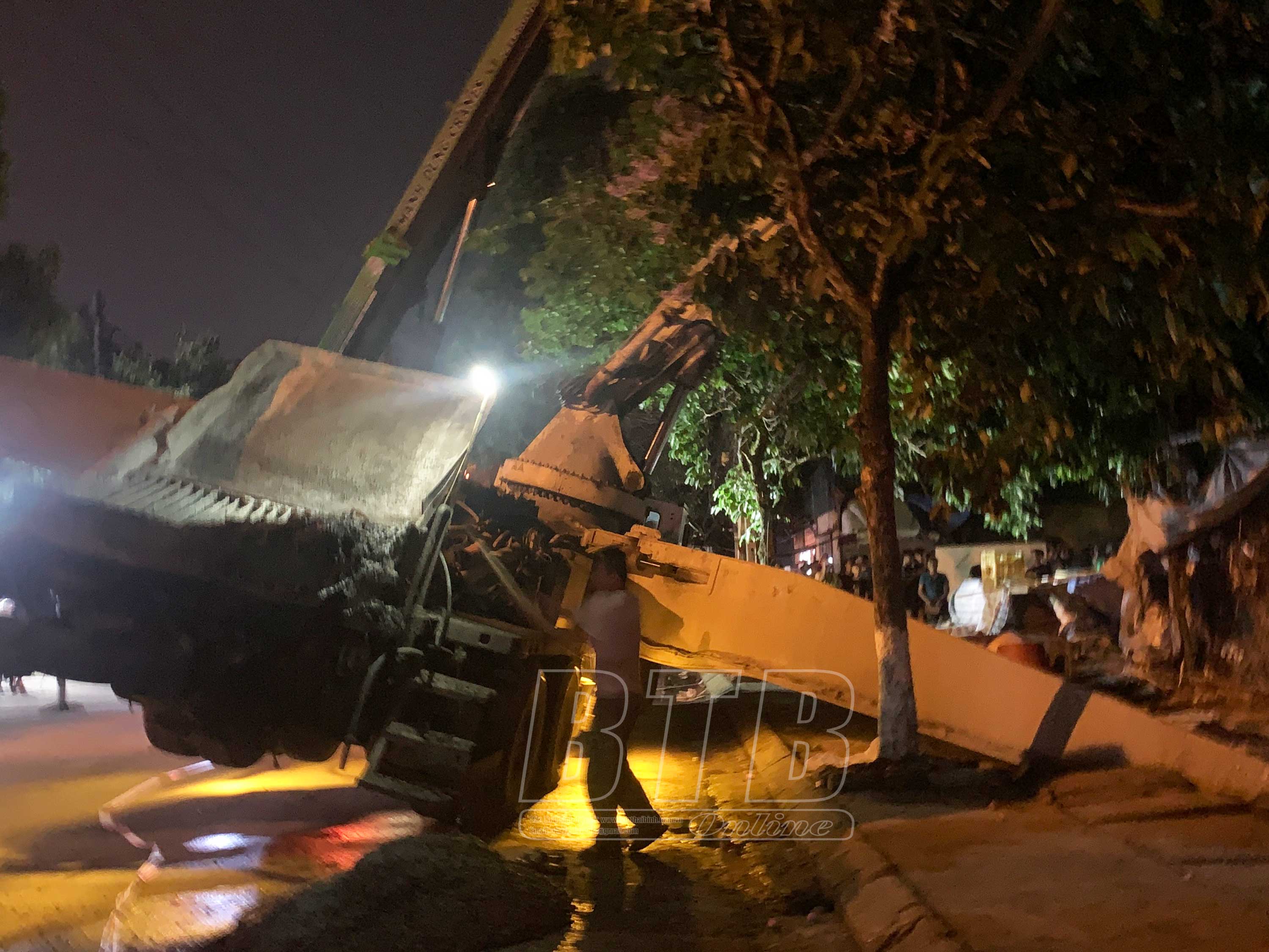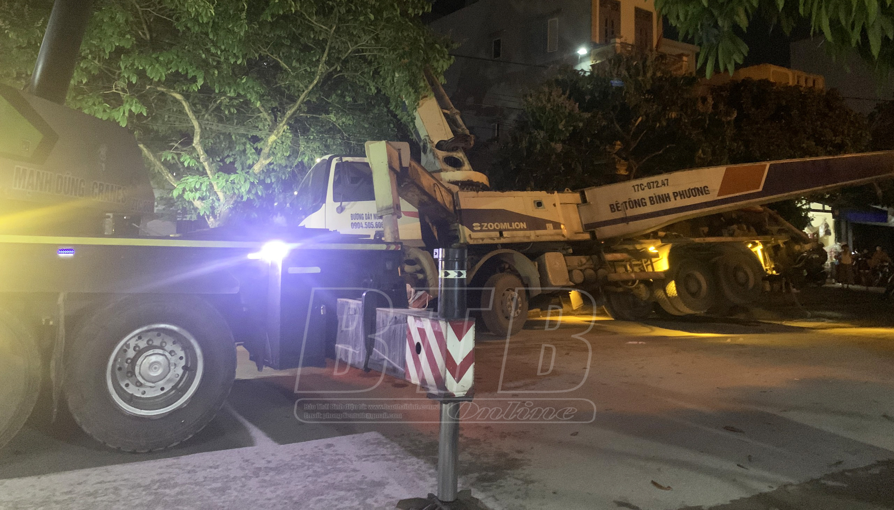 Theo báo cáo nhanh hồi 21 giờ ngày 12/5 của phường Tiền Phong: Khoảng 19 giờ ngày 12/5, xe bồn bê tông BKS 17C-072.47 hiệu “Bê tông Bình Phương” dừng đỗ trên đường Trần Thủ Độ, trước cửa số nhà 74, thuộc tổ dân phố số 6, phường Tiền Phong để nối cần cẩu truyền ống dẫn rót bê tông vào đổ mái tầng 2 một ngôi nhà đang xây dựng phía trong ngõ sau mặt đường thì bị lật nghiêng. Thời điểm xảy ra vụ việc, tại hiện trường có hơn 10 công nhân đang làm việc trên mái nhà. Hậu quả vụ tai nạn khiến ít nhất 3 người bị thương, nhập viện cấp cứu; trong đó có 1 người bị thương rất nặng.