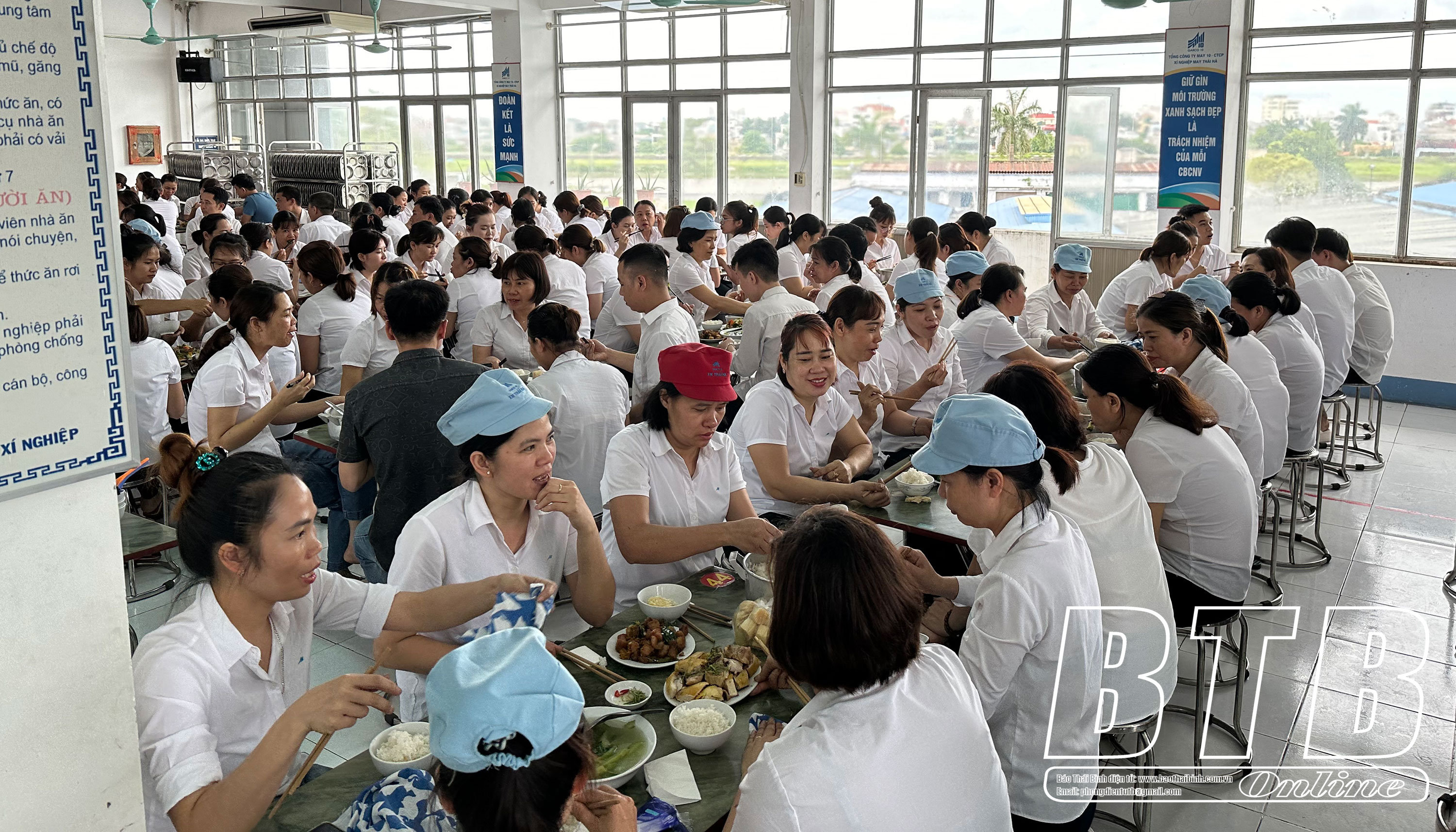 Theo đó, gần 400 đoàn viên, người lao động Xí nghiệp May Thái Hà được thưởng thức bữa cơm công đoàn gồm nhiều món ăn ngon, bảo đảm dinh dưỡng và vệ sinh an toàn thực phẩm. Mỗi suất ăn trị giá 68.000 đồng, tăng 50.000 đồng/suất so với bữa ăn ca hàng ngày.