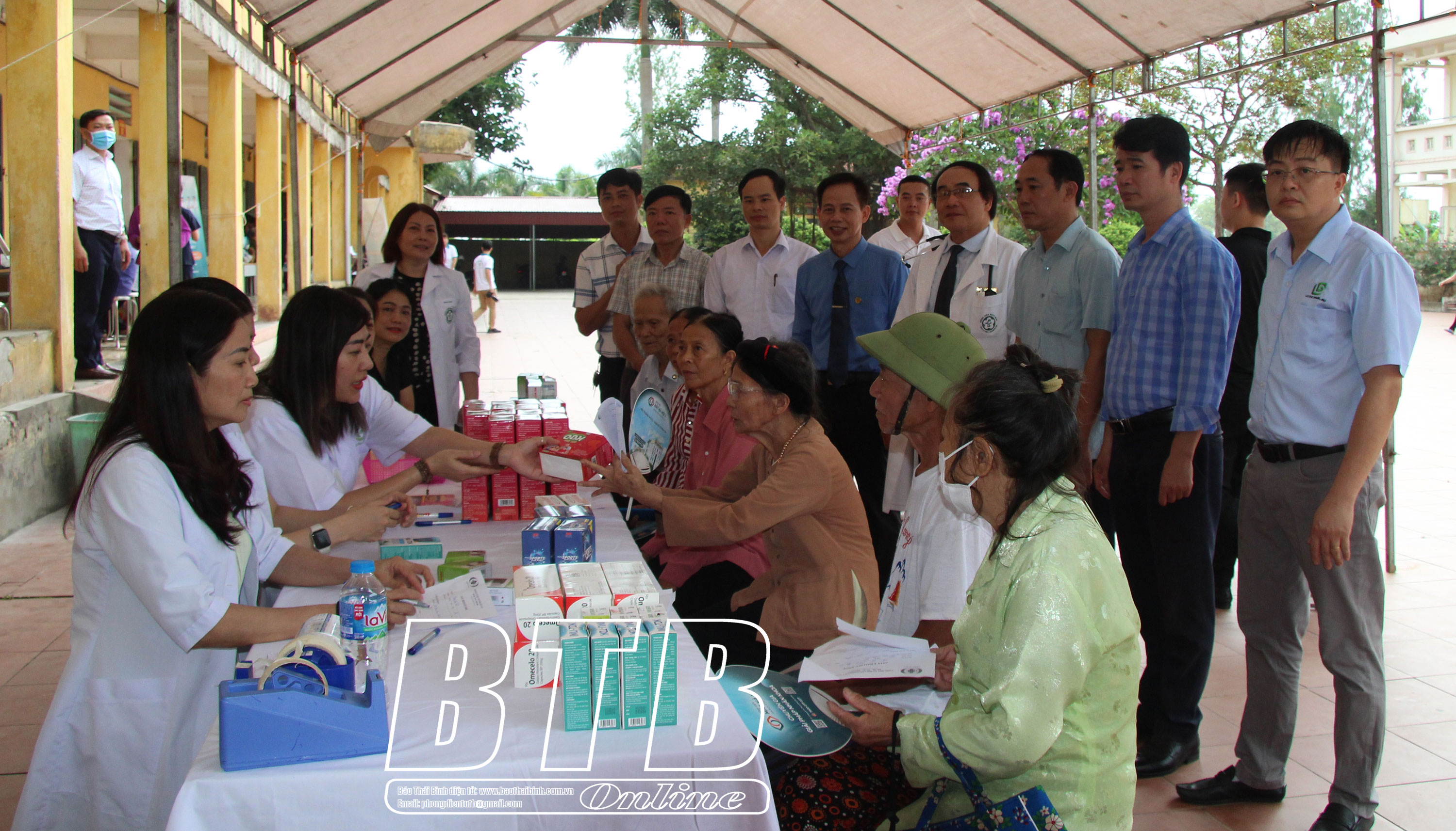 Sau khám bệnh, mỗi người dân được cấp phát thuốc miễn phí trị giá 350.000 đồng.