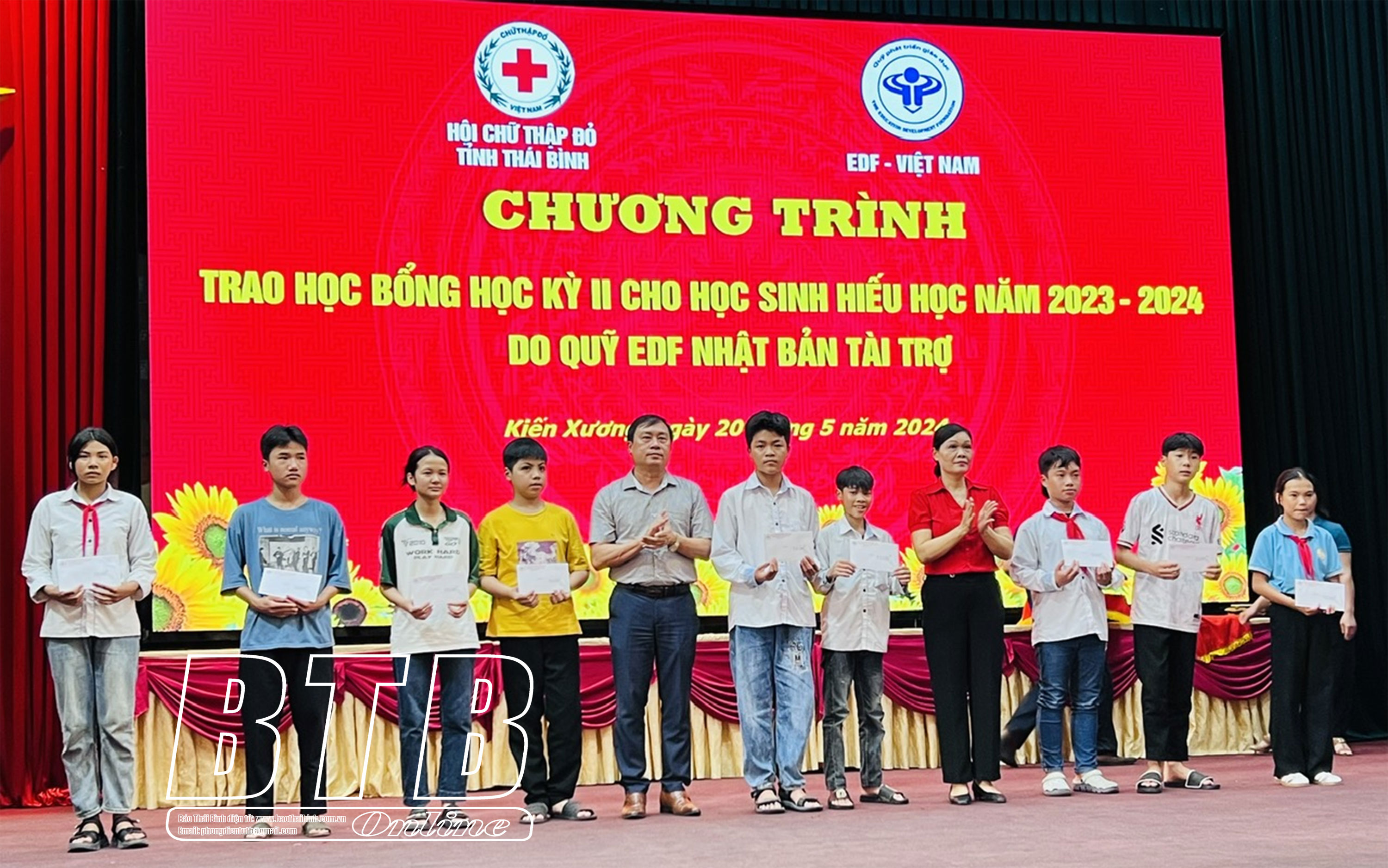 Chiều ngày 20/5, Hội Chữ thập đỏ huyện Kiến Xương tổ chức trao học bổng của quỹ EDF do Nhật Bản tài trợ cho học sinh nghèo vượt khó học giỏi trên địa bàn huyện.