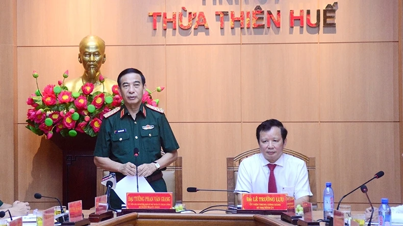 Phát biểu tại buổi làm việc, Bộ trưởng Quốc phòng, Đại tướng Phan Văn Giang biểu dương và đánh giá cao những kết quả đã đạt được của Đảng bộ, chính quyền, nhân dân và các lực lượng vũ trang tỉnh Thừa Thiên Huế trong thời gian qua. Đặc biệt, chỉ số tăng trưởng kinh tế ổn định, cuộc sống của nhân dân được nâng lên, cảnh quan môi trường sạch đẹp; công tác phát huy giá trị di sản được chú trọng và quốc phòng an ninh luôn được giữ vững.