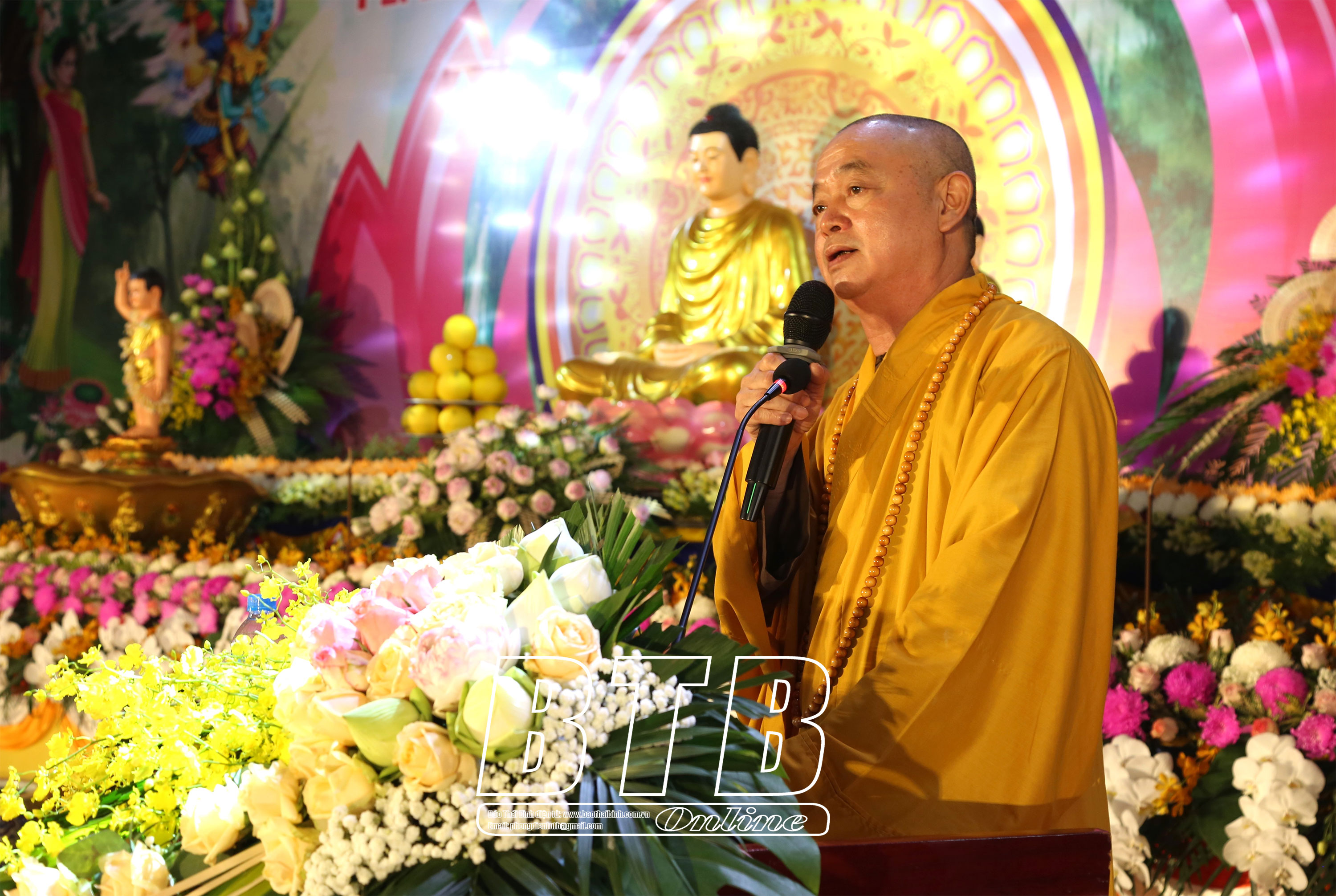 Tại buổi lễ, các đồng chí lãnh đạo tỉnh đã tặng hoa chúc mừng Ban Trị sự GHPG tỉnh; đồng thời cùng các vị chức sắc, tăng ni, Phật tử tham gia các nghi thức niệm hương, tắm Phật và các nghi lễ truyền thống, cầu nguyện cho quốc thái dân an, Phật pháp trường tồn, chúng sinh an lạc.