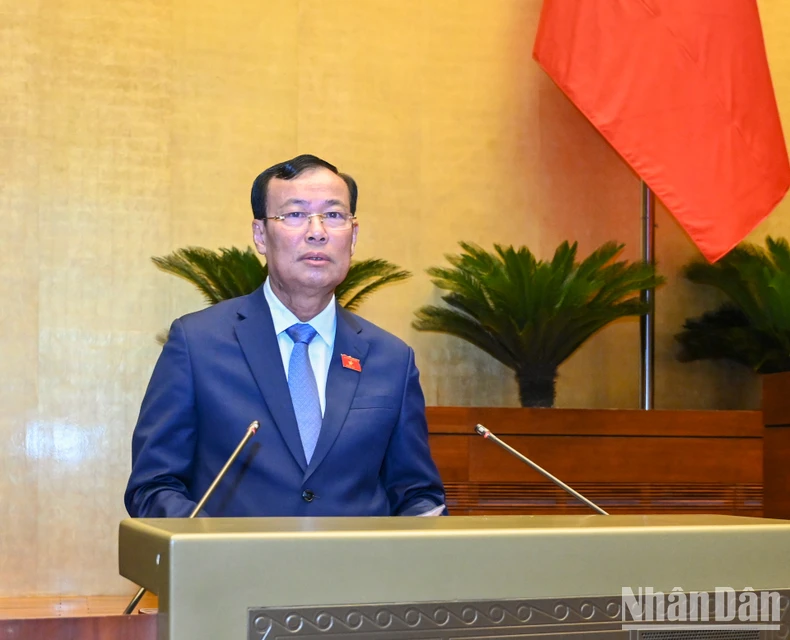 Chủ nhiệm Ủy ban Quốc phòng và An ninh của Quốc hội Lê Tấn Tới thông tin về dự thảo Luật tại phiên làm việc chiều 22/5. (Ảnh: DUY LINH).