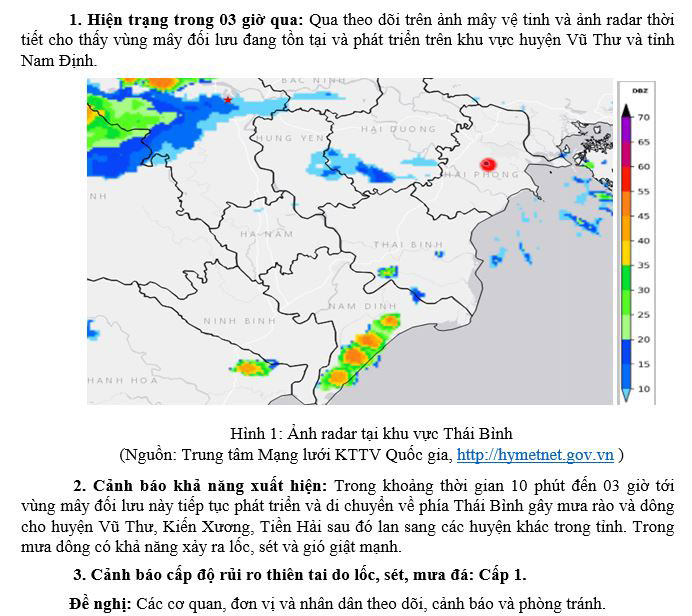 Tin cảnh báo dông, lốc, sét, mưa đá và mưa lớn cục bộ trên khu vực tỉnh Thái Bình