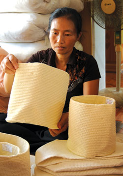 Thường xuyên quan tâm, giúp đỡ, động viên chị em những lúc ốm đau, những khi gia đình có công việc để chị em yên tâm. Khi công việc đã ổn định và dần quen với nghề, chị em ngày càng hăng say, gắn bó với nghề hơn. Tay nghề của chị em được nâng lên, ngày công lao động cũng ngày một cao, số lượng chị em tham gia ngày càng đông. Hiện nay tổ hợp của gia đình chị có trên 200 lao động (thời điểm nông nhàn số lao động lên tới 300 - 400 lao động), thu nhập bình quân 650 - 700.000 đồng/ người/tháng. Nhiều chị em có tay nghề cao mức thu nhập đạt 900 - 950.000 đồng/người/tháng. Tổng doanh thu của tổ hợp năm 2009 vừa qua đạt xấp xỉ 600 triệu đồng; 5 tháng đầu năm 2010 đạt trên 300 triệu đồng.