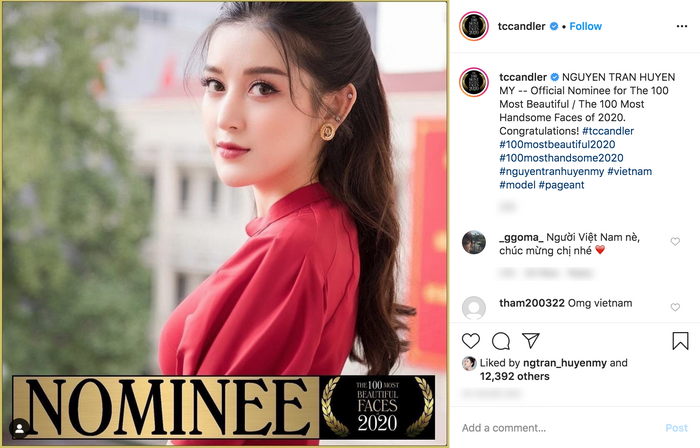 Phía dưới bài đăng, đông đảo khán giả Việt Nam đã bày tỏ sự bất ngờ cũng như gửi lời chúc mừng tới Á hậu Việt Nam 2014. Nhiều người cho rằng, Huyền My xứng đáng được có tên trong danh sách đề cử này.