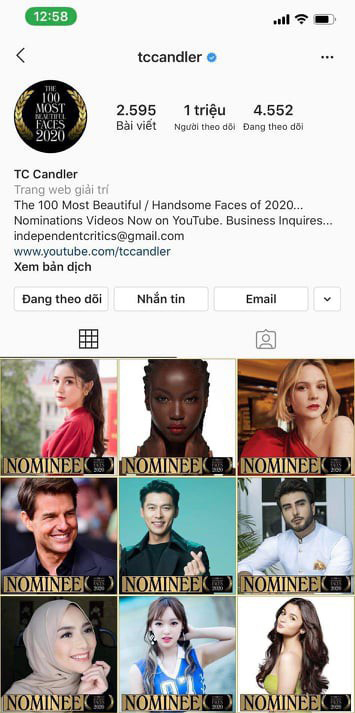 Mới đây, trang web phê bình nổi tiếng thế giới TC Candler vừa cập nhật danh sách đề cử top 100 nhân vật có gương mặt đẹp nhất thế giới. Thông qua việc tổng hợp rất nhiều ý kiến từ các diễn đàn cũng như tham khảo về mức độ nổi tiếng, trang web TC Candler đã đưa ra những tiêu chí riêng để lựa chọn ra danh sách đề cử năm nay với hàng loạt cái tên đình đám đến từ nhiều quốc gia khác nhau.