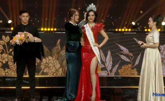 Bà Trương Ngọc Ánh, Trưởng Ban tổ chức cuộc thi trao vương miện Hoa hậu cho Nông Thúy Hằng.