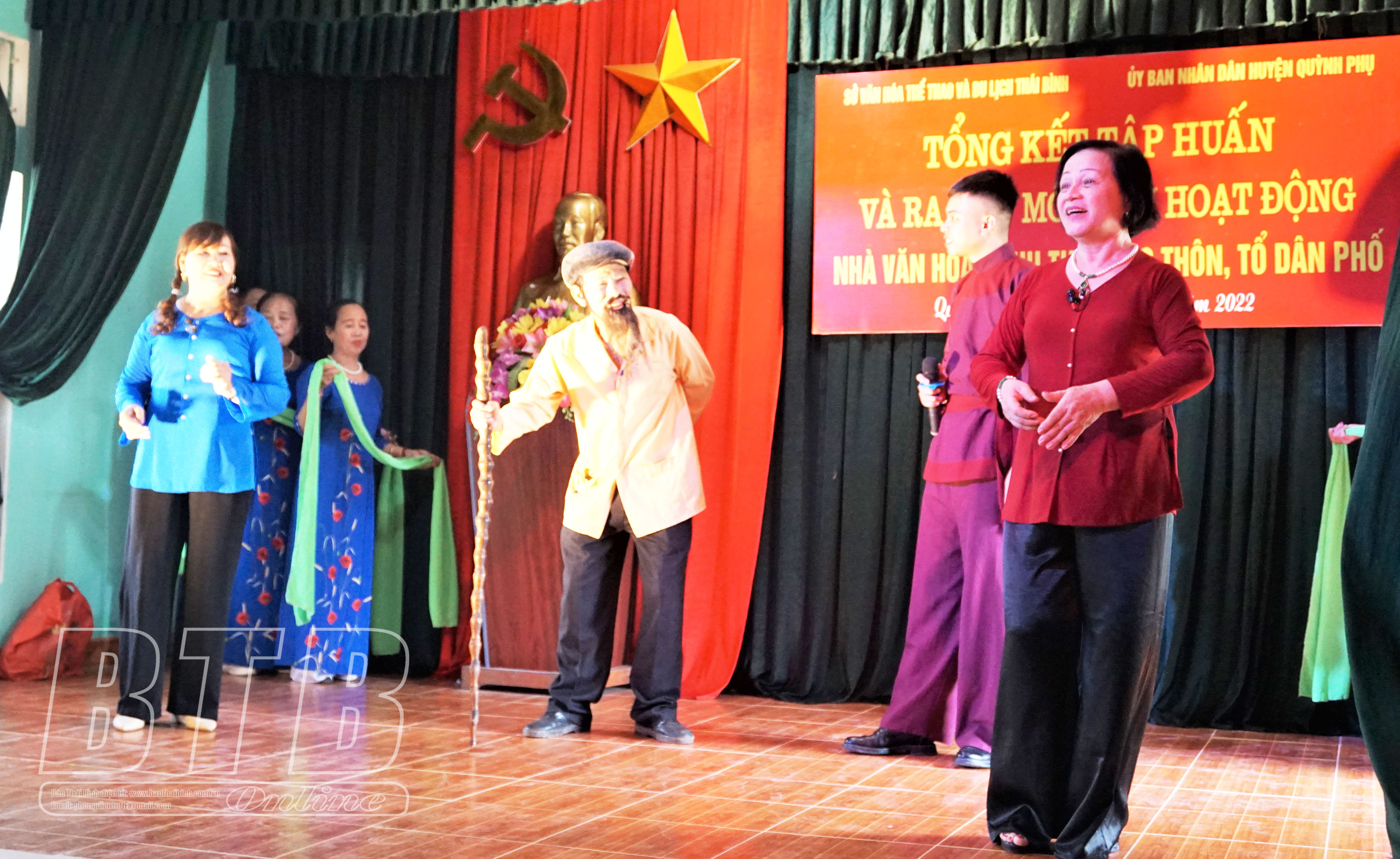 Một tiểu phẩm chèo ca ngợi nông thôn mới được báo cáo tại lễ tổng kết.