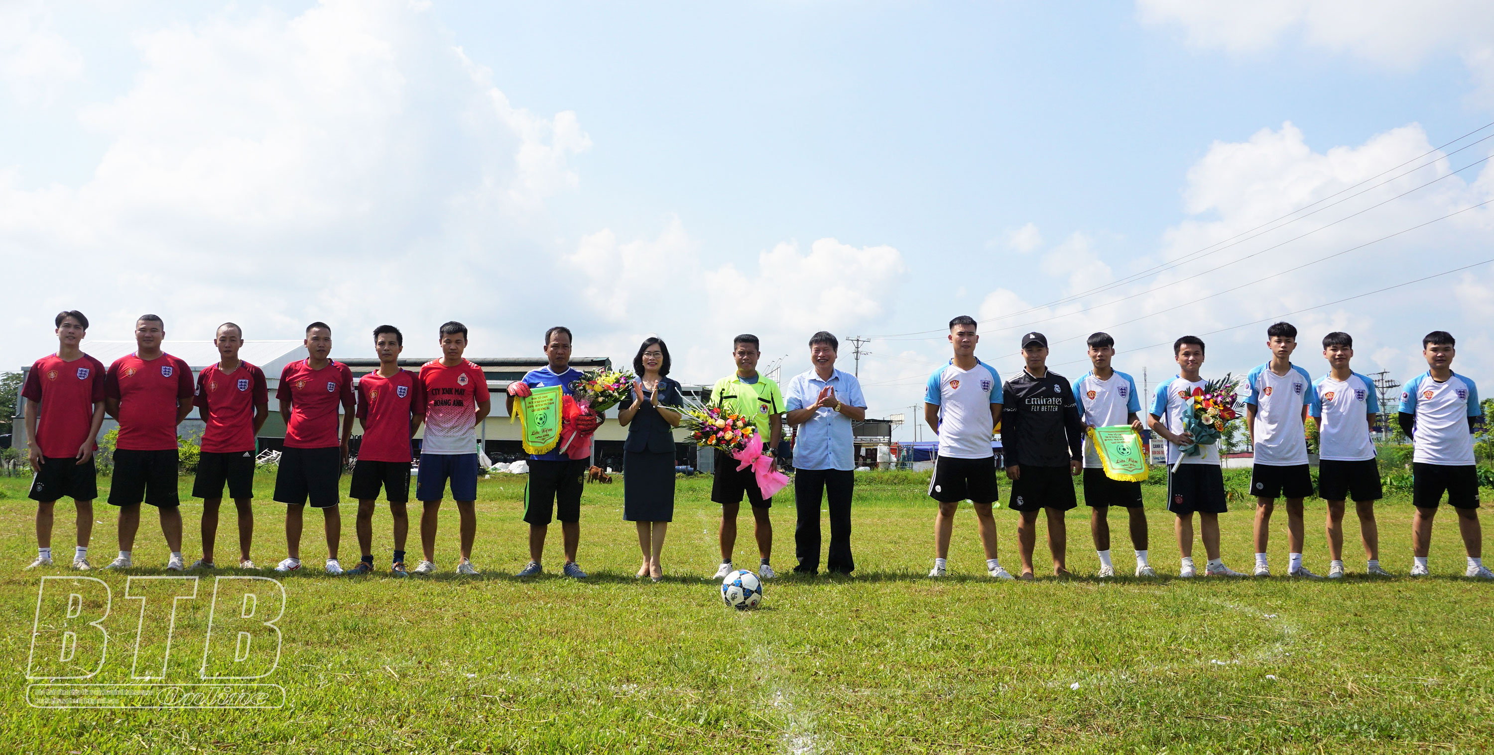 Trận bóng đá giao hữu của các thành viên trong câu lạc bộ thôn An Hiệp.