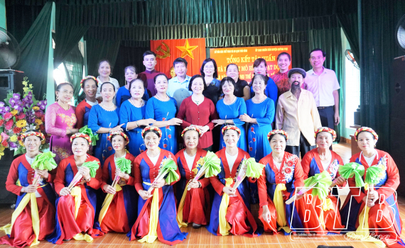 Các thành viên trong ban chủ nhiệm nhà văn hóa các thôn được nhận hỗ trợ thuộc huyện Quỳnh Phụ tham gia lớp tập huấn.