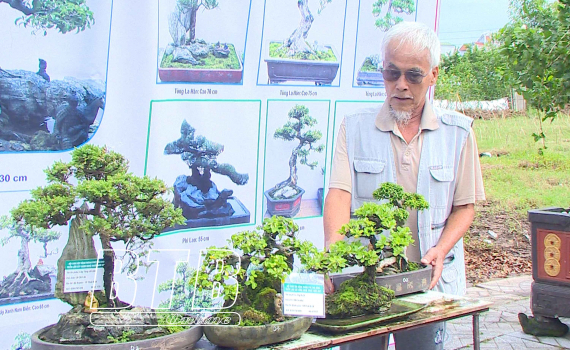 Ông Lê Trí Lân, phường Bồ Xuyên (thành phố Thái Bình) mang đến triển lãm nhiều mẫu cây sanh, si mini.