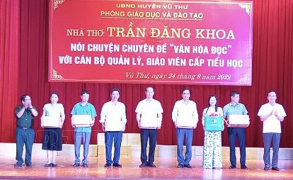 Nhân dịp này, lãnh đạo Đảng ủy Khối các cơ quan trung ương và nhà thơ Trần Đăng Khoa đã đại diện Nhà xuất bản Kim Đồng trao tặng các nhà trường trên địa bàn huyện Vũ Thư 1.600 cuốn sách dành cho lứa tuổi thiếu nhi.